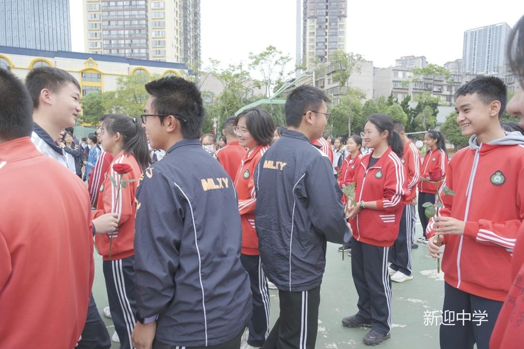 大会第五项。高一、高二年级同学用一支支鲜花表达对初三年级同学的祝福,祝福学弟学妹们中考成功,进入自己理想的高中。