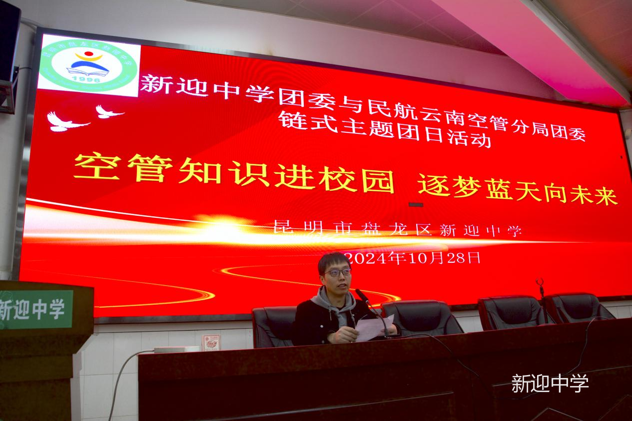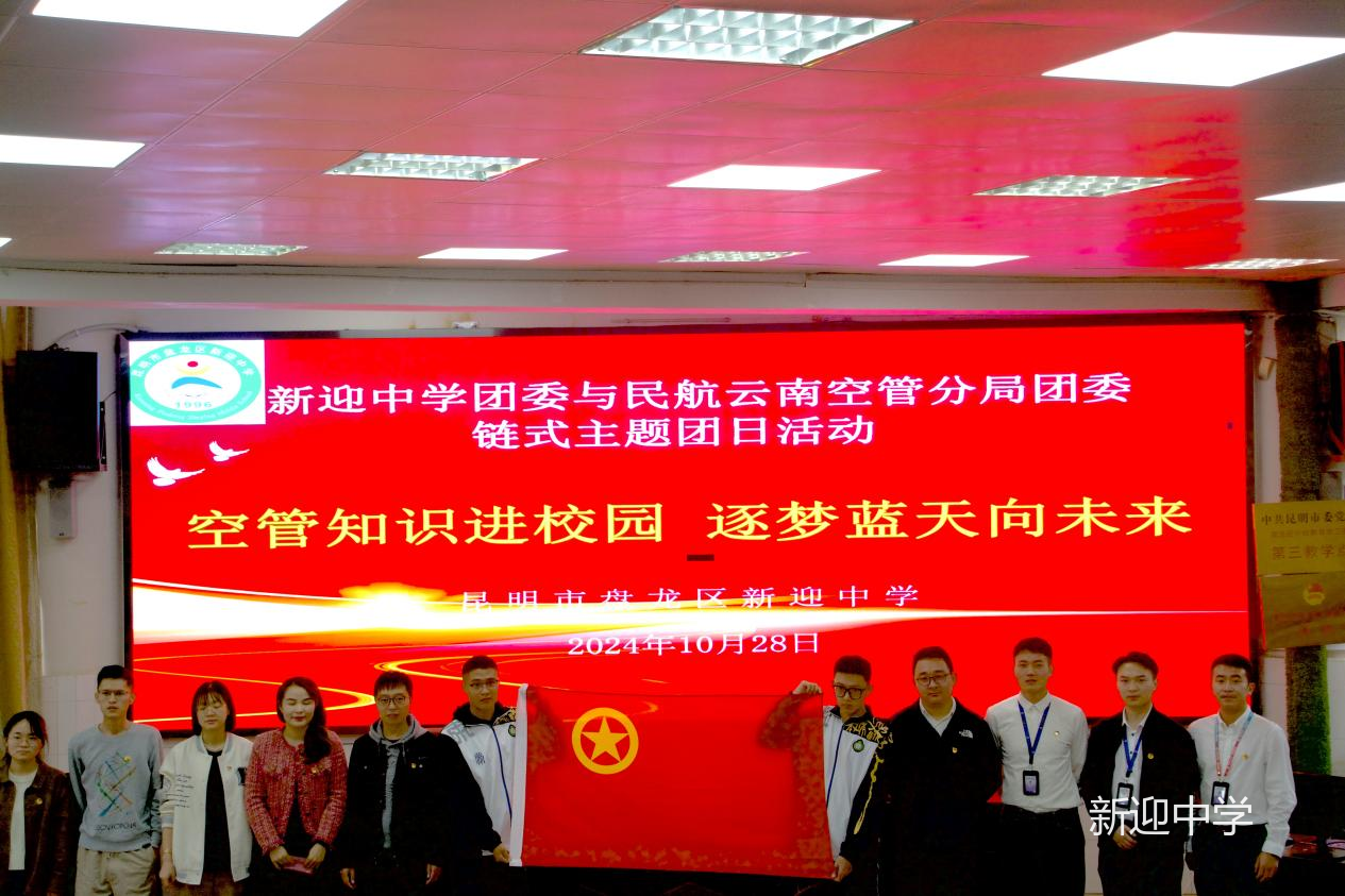 2024 年 10 月 28 日下午,在新迎中学党总支的精心牵头组织下,由民航云南空管局团委与新迎中学团委开展的一场精彩纷呈的链式主题团日活动在新迎中学拉开帷幕。此次活动,为新迎中学的师生们带来了一场关于蓝天梦想的知识盛宴。