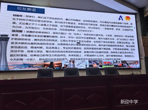 接着,在云南空管局工作的新迎中学校友肖天鑫回到母校,为学弟学妹们讲解航空方面的大学填报建议。肖天鑫结合自己的亲身经历,详细介绍了航空相关专业的报考要求和发展前景。同时,他还带来了其他校友的寄语,这些寄语充满了对学弟学妹们的鼓励和期望,让同学们感受到了新迎中学校友们的关爱与支持。