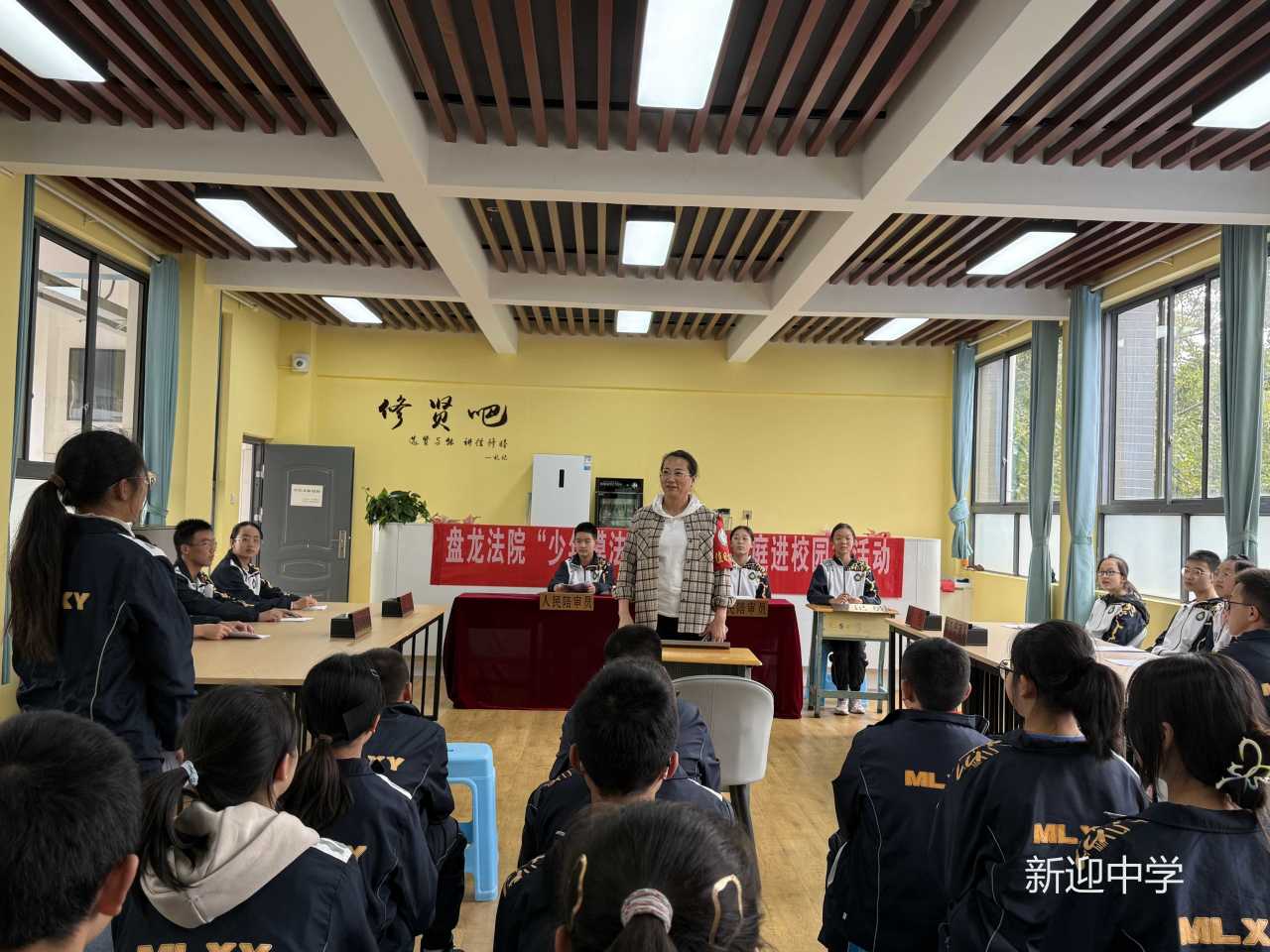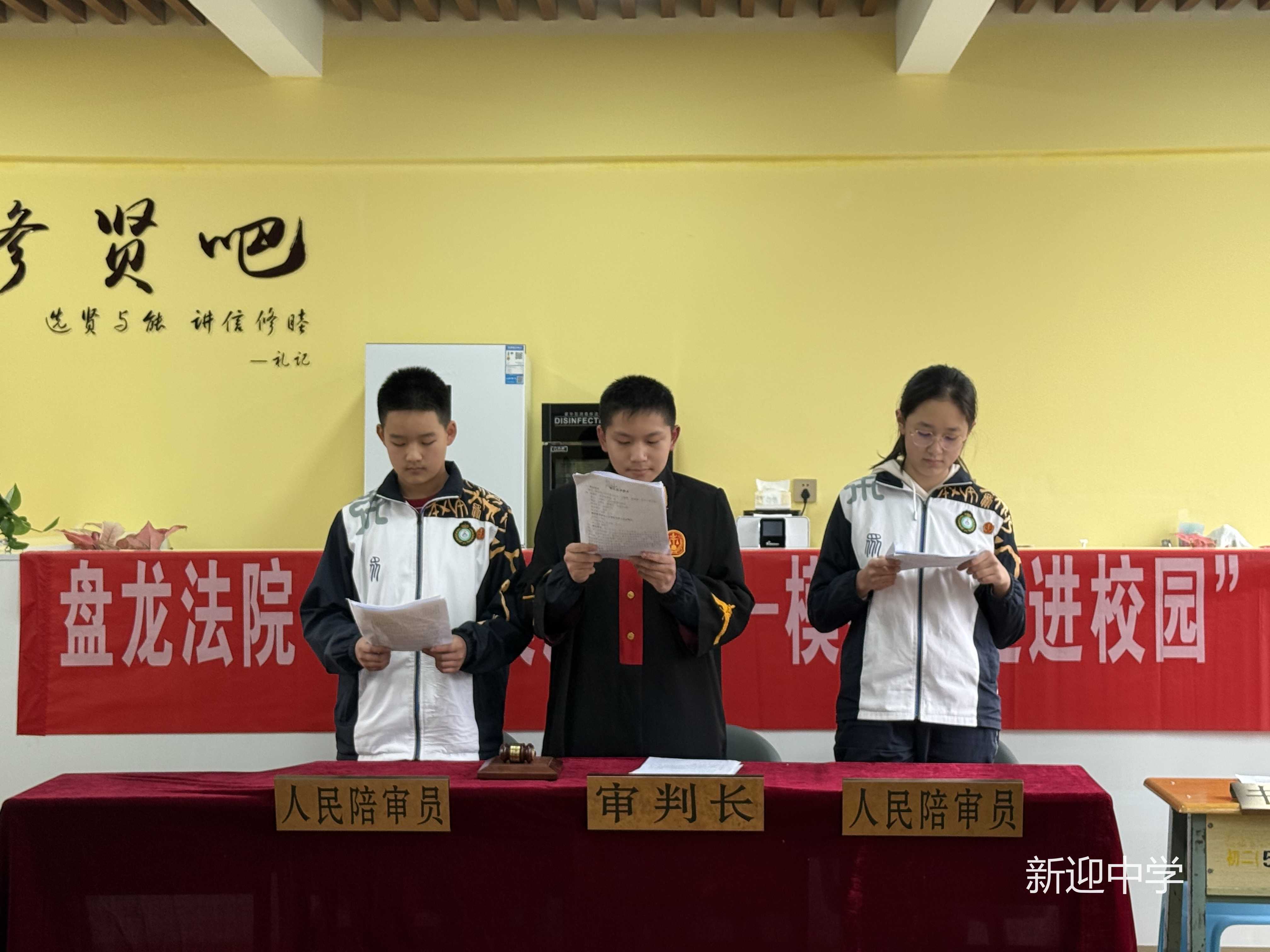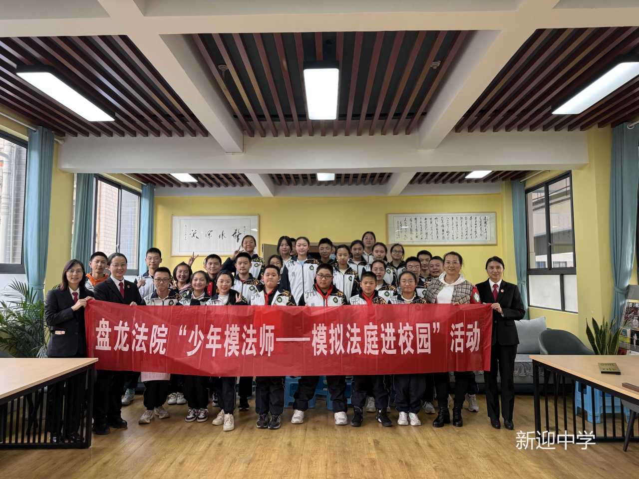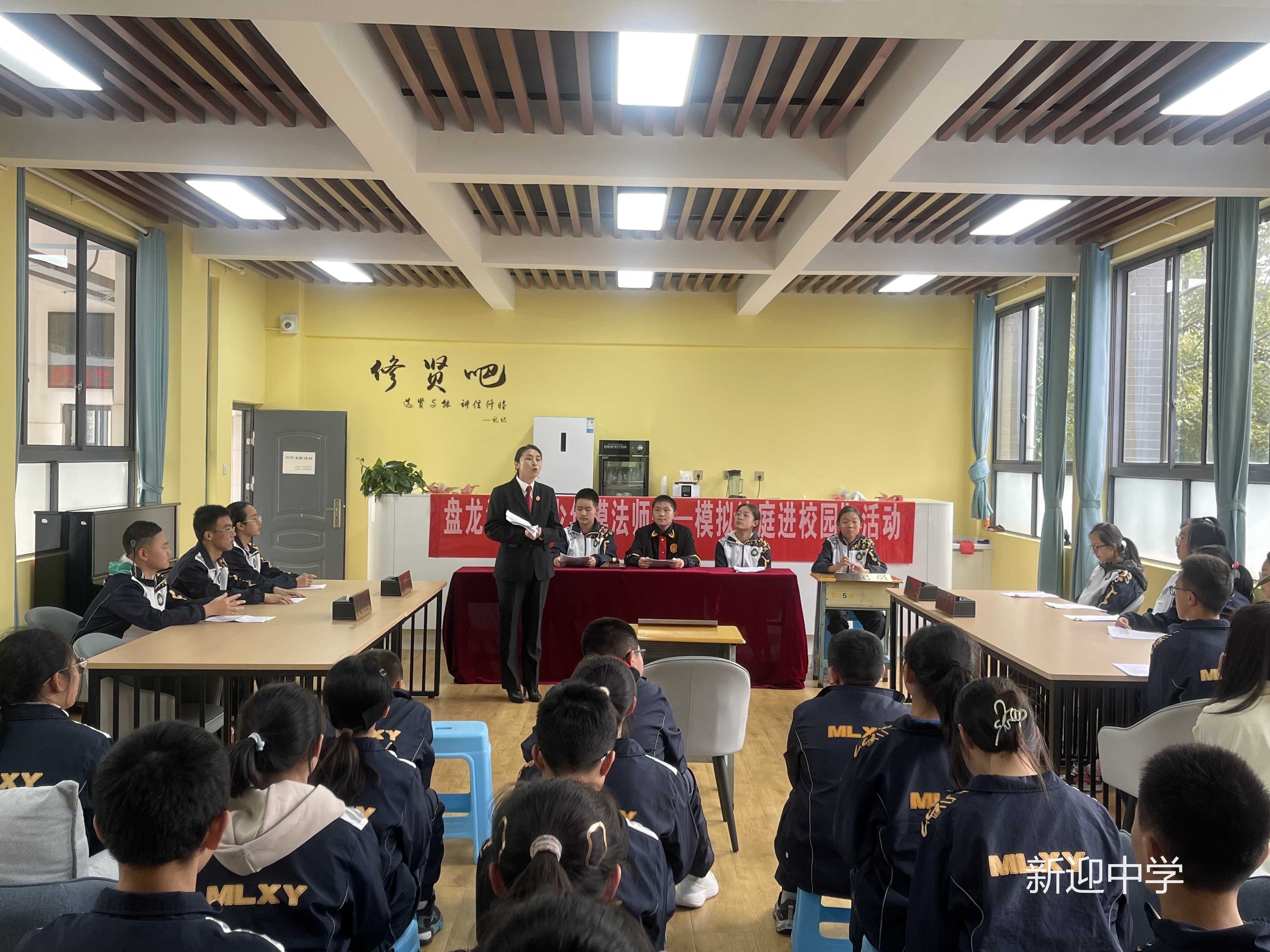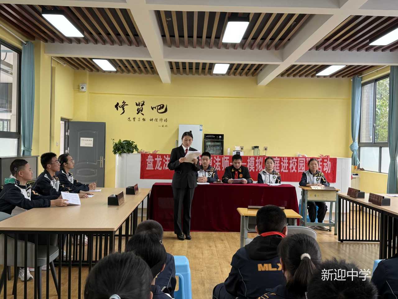 针对目前青少年法治意识、自我保护意识不强,校园霸凌案件频发等现状,为进一步加强对学生的法治教育,有效预防和减少青少年违法犯罪,让“法”的种子根植于心,营造青少年健康成长的良好氛围,让孩子们亲身体验法律程序、深切感受法治力量,10月28日,盘龙区法院与盘龙区新迎中学联合在新迎中学小龙路校区开展了一场别开生面的“模拟法庭”进校园普法教育活动。 本次活动由“模拟法庭”、法律知识竞答、法官点评答疑三个部分组成,给同学们呈现了一堂精彩、生动、深刻的法治教育课。